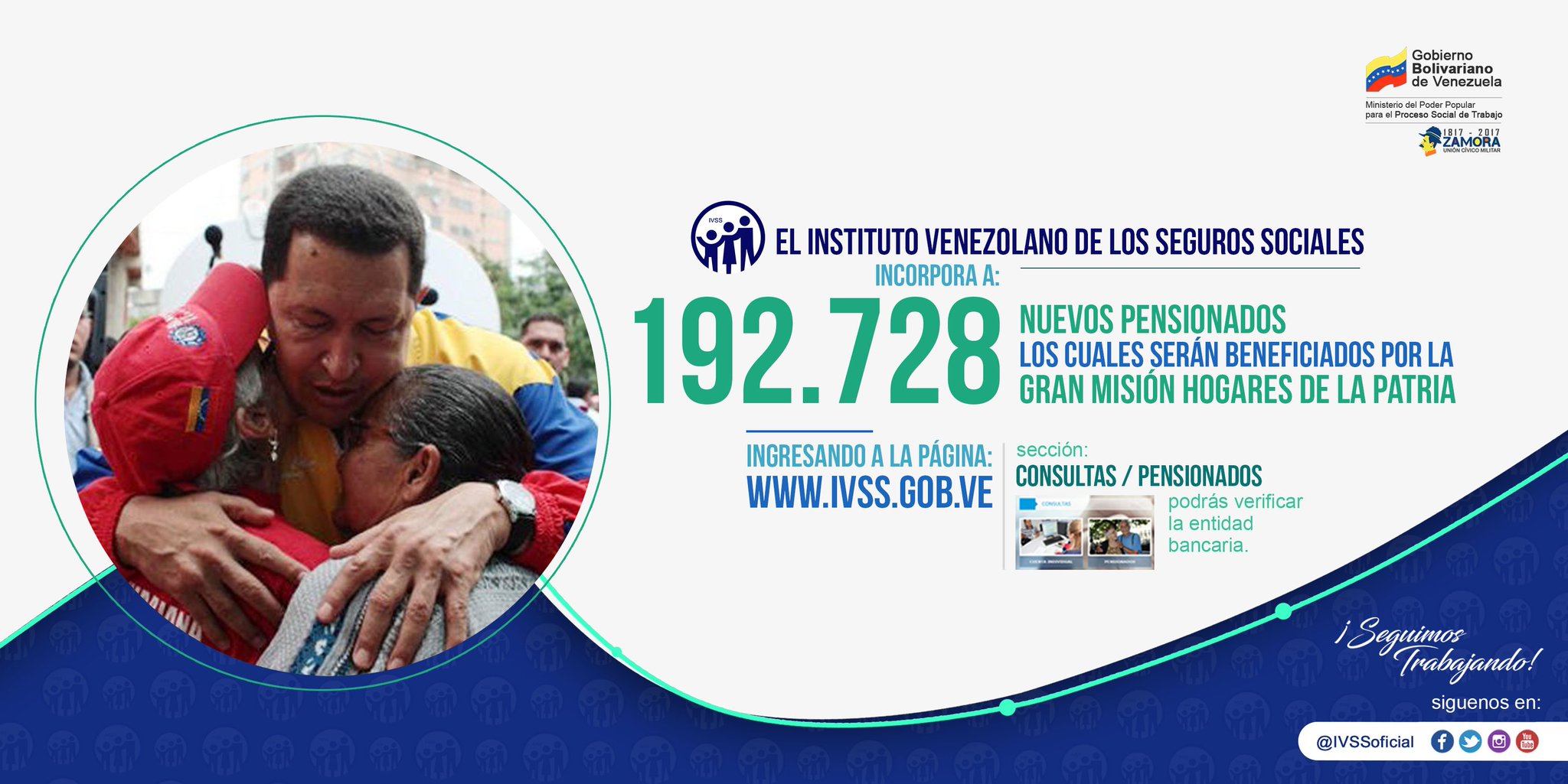 El Instituto Venezolano de los Seguros Sociales a incorporado 197.728 nuevos pensionados beneficiados gracias a la Gran Misión Hogares de la Patria.